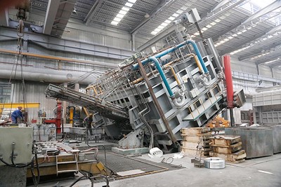 El horno de frecuencia intermedia calienta y funde el material de aluminio frío, luego lo vierte en el horno de fusión para el tratamiento de aleación.
